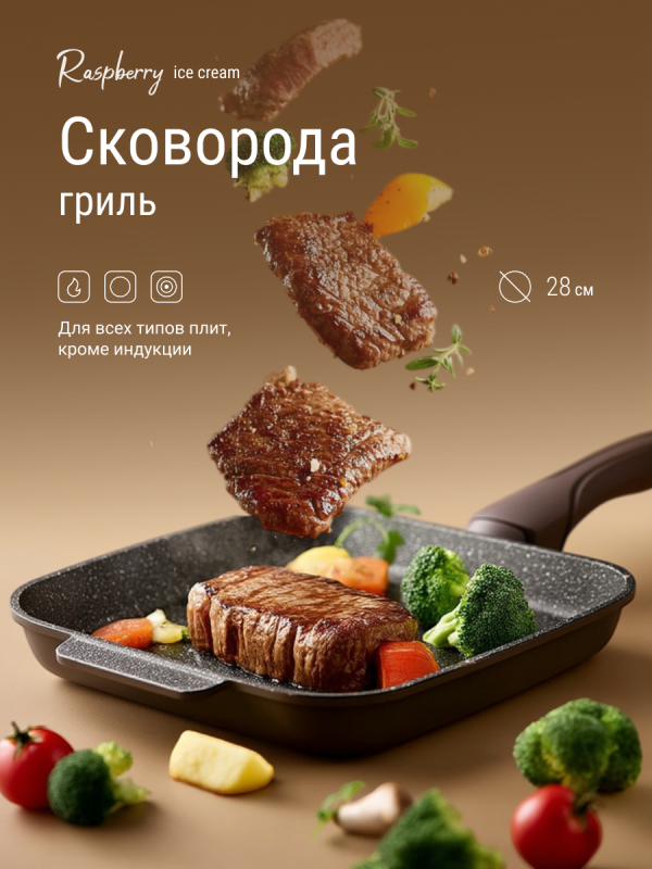 SaleNewСковорода Гриль 280*280 Ice Cream низкий