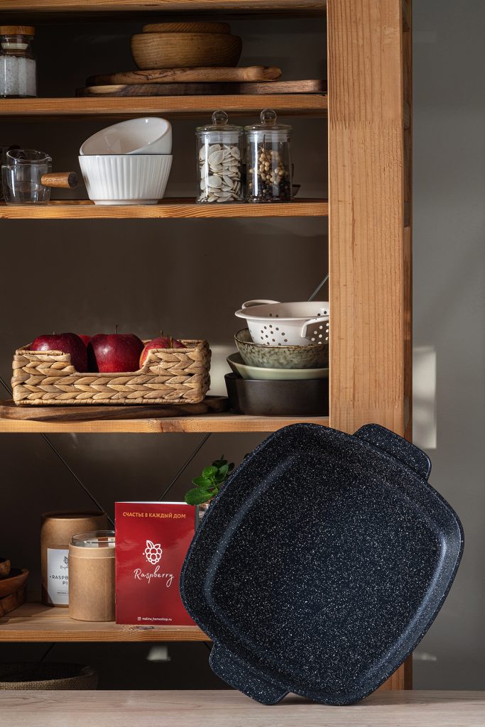 Ваша посуда Raspberry. Для тебя, для дома, для семьи. Дно посуды не окрашено, но не царапает стеклокерамику и выглядит эстетично, удобная эргономичная ручка, сделана из бакелита, не выделяет запаха при нагревании. Вся наша посуда сделана литым способом! Это значит, что посуда изготавливается методом ручного кокильного литья (литье в пресс форму) . Поэтому наша посуда не деформируется в процессе эксплуатации, имеет толстое дно — 6 мм и толстые стенки — 4 мм. Безопасное антипригарное покрытие позволяет готовить без масла! И вместе с крышкой можно ставить в духовку